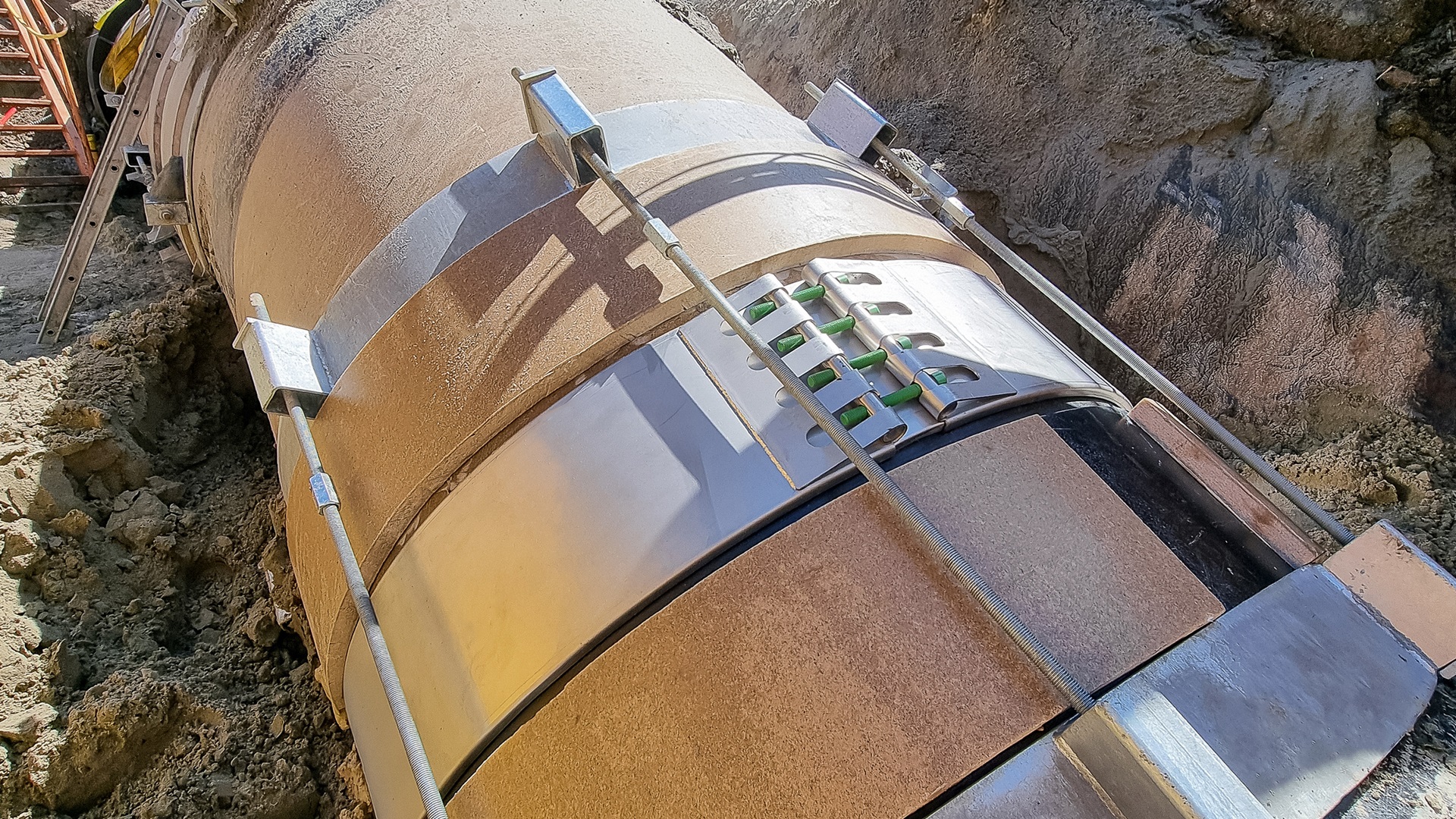 Om ervoor te zorgen dat dit afvalwater ook in de toekomst veilig vervoerd kan worden, zijn een aantal delen van de persleiding vernieuwd. Hierbij zijn verschillende buistypen met minimale tolerantieruimte nauwkeurig op elkaar aangesloten met behulp van vijf robuuste Repico® STFL koppelingen DN1500. Tijdens het vernieuwen van deze leiding was het noodzakelijk de overgang te maken tussen bestaande PSK betonbuizen en Bonna Sentab VSP-buizen naar nieuwe GVK-buizen. Hiervoor zijn vijf Repico® STFL koppelingen DN1500 geproduceerd.